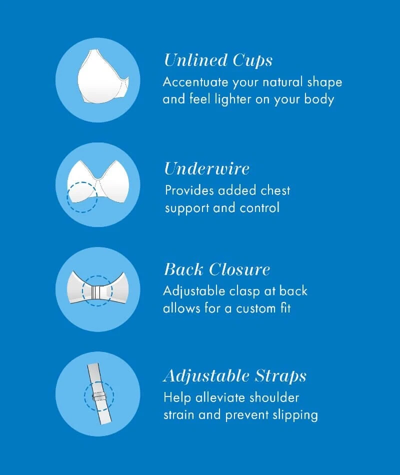 - Built with unlined cups for lightweight comfort that accentuates your natural shape.