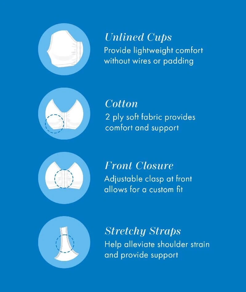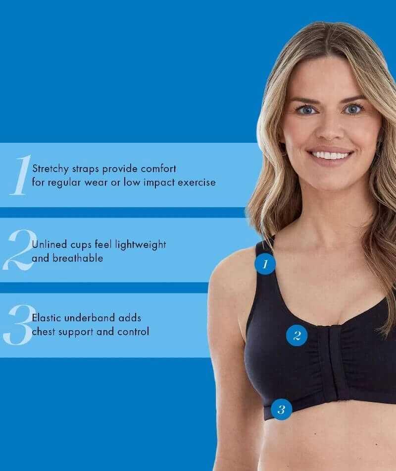 • A low impact front-closure bra which is great to wear post surgery as well as light exercise.