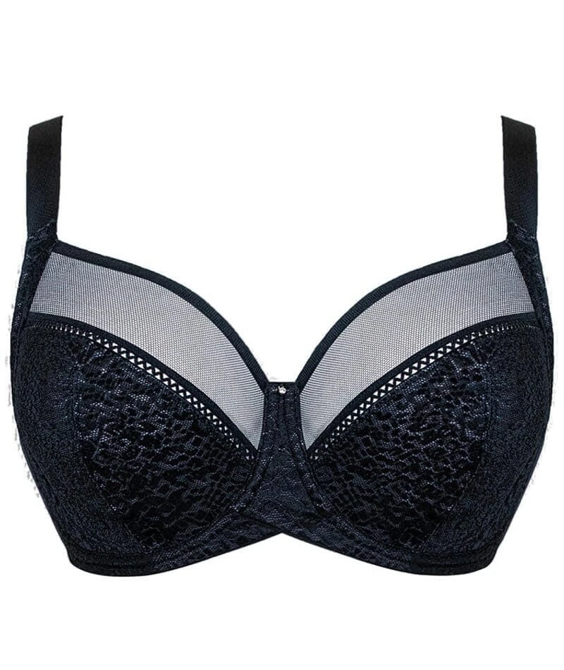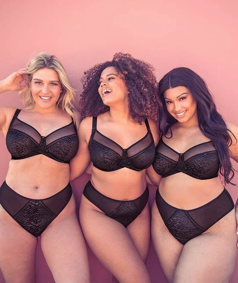 Here we have taken the best bits from Victory (cup shape, forward projection, supportive fabrics) and added in some comfort features, like the curved up centre front and centre pull strap positioning to launch this Amazing style offering great fit all the way up to a K cup. To make this set extra special we have sourced a beautifully delicate and striking snakeskin mesh which shimmers over the contrast lining, plus our cup seams are picked out with the use of rickrack trimming along the vertical and overbust seams to really enhance the tailored look of this style. A delicate sparkling charm finishes this bra off.