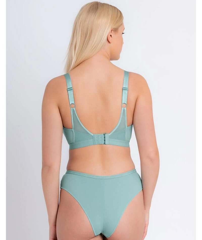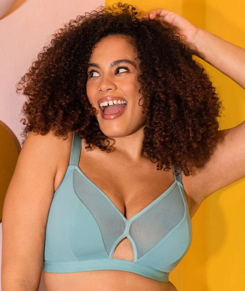 Back by popular demand, your favourite WFH bra returns! Get up and Chill in beautiful sage is the perfect bra for lounging, this non-wired bralette with supportive lightweight mesh provides maximum hold and lift. Buttery soft microfibre outer is smooth to the touch, with mesh paneling and keyhole detailing Get Up & Chill ticks all the boxes for the ultimate lounge bra.