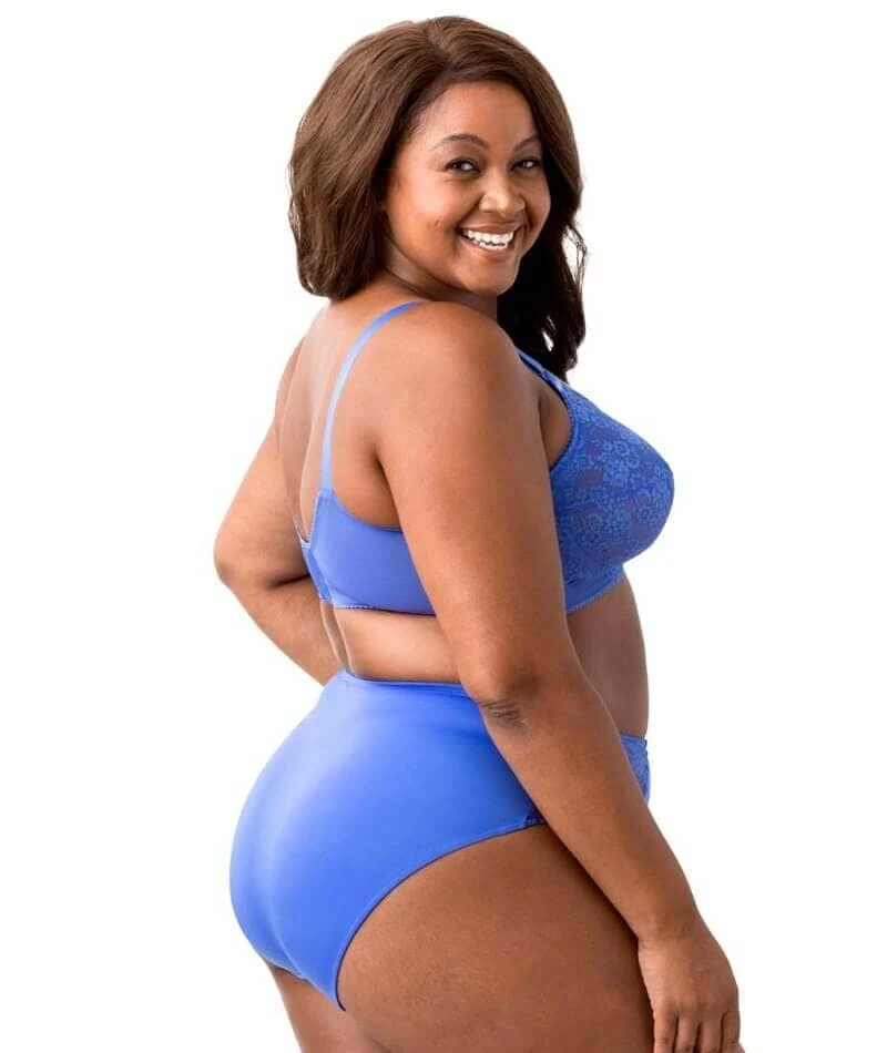 - Three piece, lace, soft cup construction with a full cup sling to support the bust.
