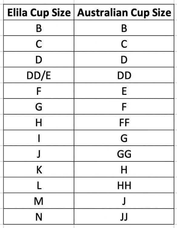 ** Please note – order these in Elila Cup Size. For Australian size conversion refer to above picture or if unsure contact us. **
