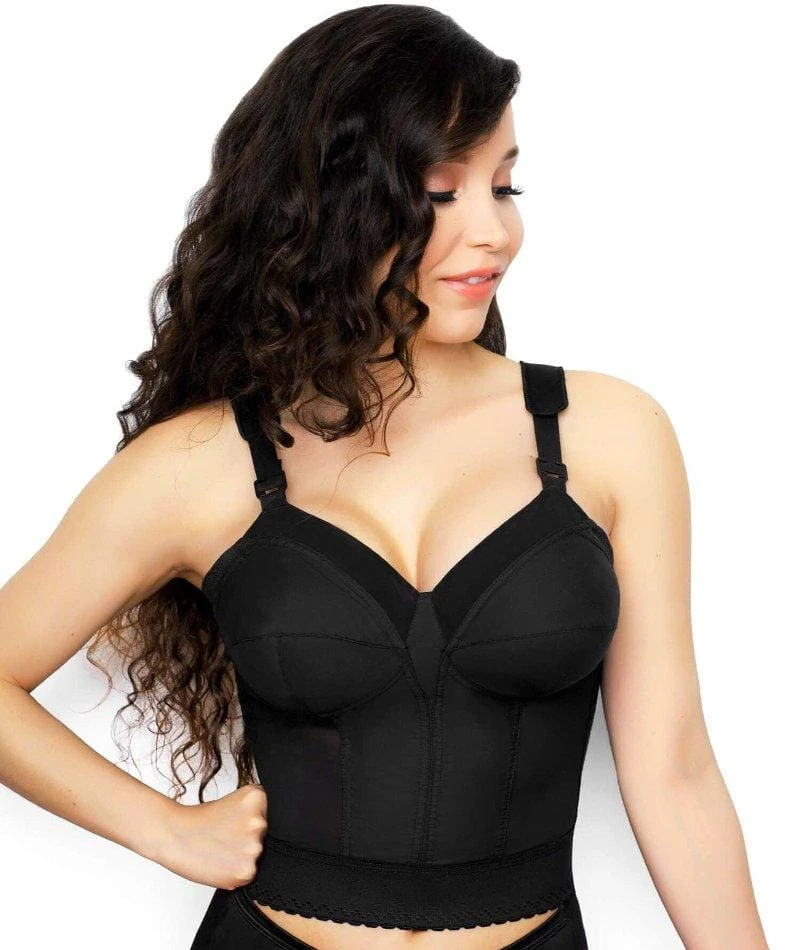 The Exquisite Form® Fully® Back Close Longline Bra. Made to smooth the torso while providing extra support and comfort. Full-coverage cups add lift and contouring to enhance your figure and are also wirefree to eliminate pinching. Built-in boning on the sides and back give extra support to hold you in place. Cups and body are made from our signature Heritage collection fabric of non-stretch, woven cotton/polyester blend to provide superior support.