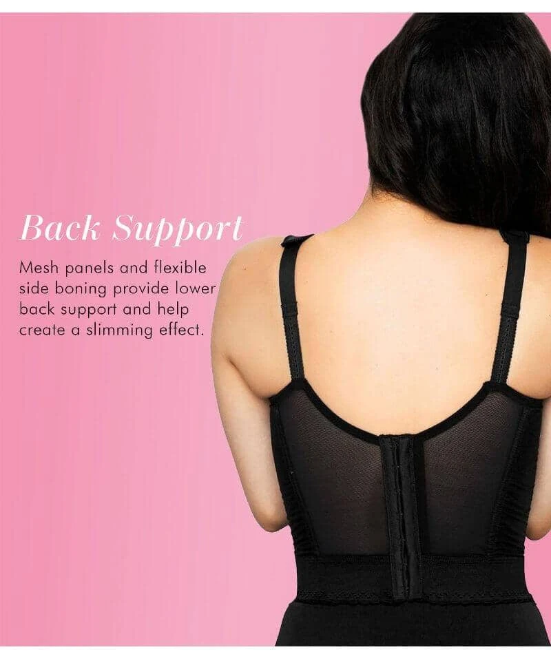 - Flexible side boning for additional support and shaping