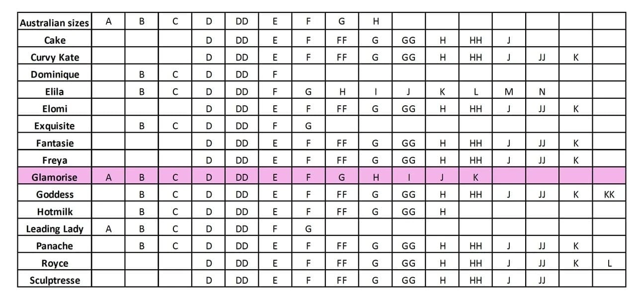 Sizes:Â 12-26 BCD; 12-26 DDE; 14-26 FGÂ