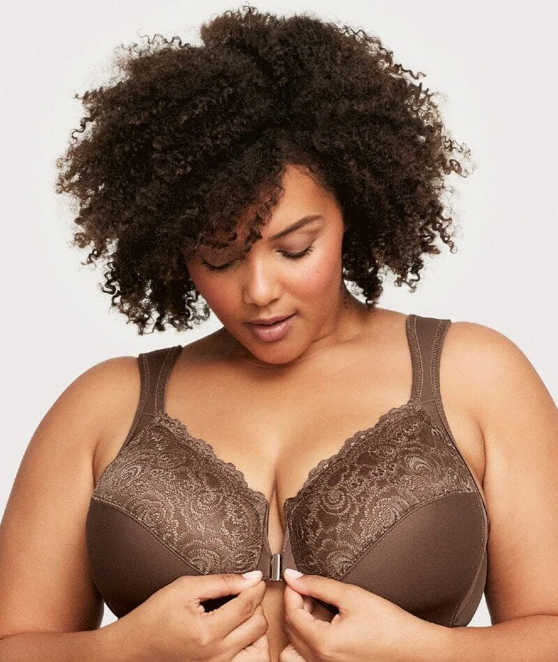 At the intersection of convenience and comfort is this plus-size bra. The secure front clasp goes on and off in a pinch while the cushioned wire never gets close enough to pinch back.