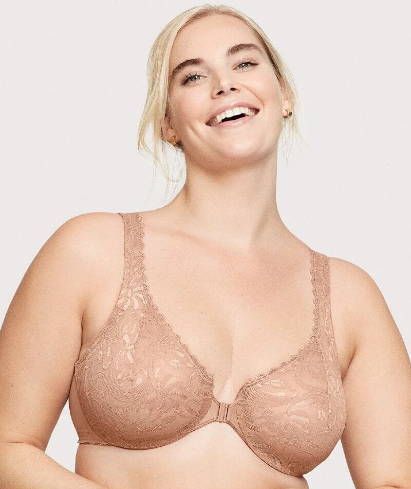 What’s not to love about a bra as comfortable as your everyday bra, but as sexy as sexy gets? Designed with our exclusive underwire and a secure front clasp, the stretch lace makes everyday that much more beautiful.