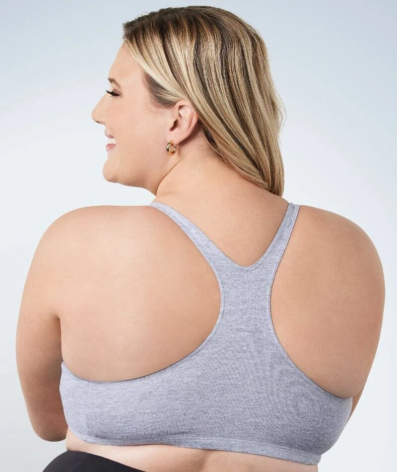 The Serena plus size sports bra is the perfect, low-impact style for your weekly yoga class. Made from a double layer of breathable, stretchy cotton, it has a racerback shape to distribute weight and leave you feeling comfortably supported. In fact, it’s so comfortable you’ll also love this wirefree sports bra simply for lounging!