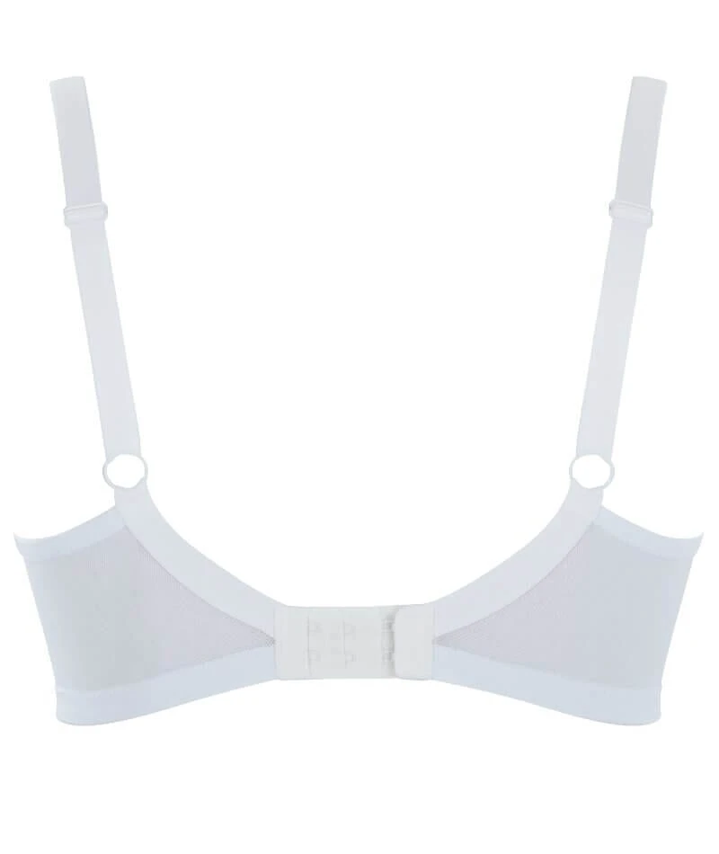 The Panache Ana Plunge bra has feminine stretch lace top cups, finished with a satin ribbon bow and beautiful bead detail. The stabiliser lined bottom cups and inner side sling provide comfortable relaxed support and an uplifted fit up to a H cup. Ana gives a sexy plunging neckline, perfect for slipping on underneath low-cut outfits!