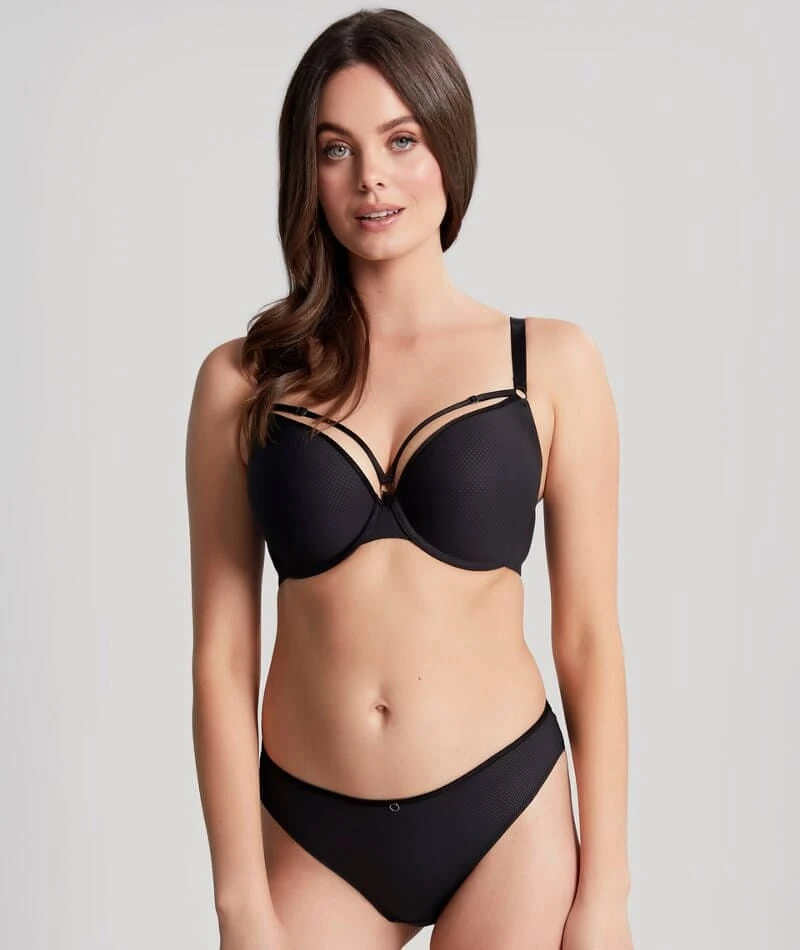The brand new Porcelain Élan Luxe gives your favourite everyday plunge bra a sexy twist. Designed with strapping detailing and a premium cup finish, give your confidence a boost with this daring set