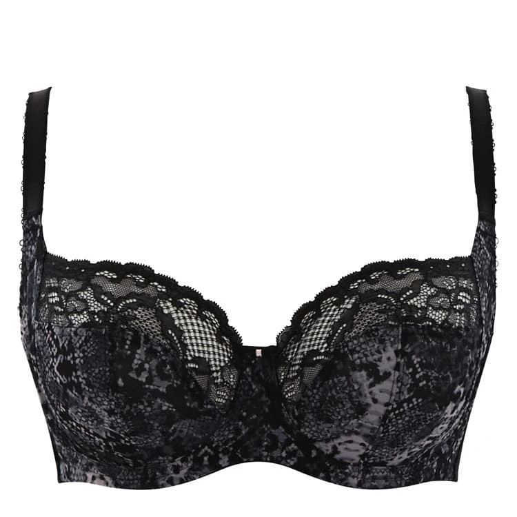Jasmine is a classic Panache balconette style, fit for any occasion. Offering incredible uplift up to a K cup, Jasmine gives amazing forward projection and a very supportive fit. Its stretch lace top cup allows for an accommodating fit for fuller busts, whilst the laminated bottom cup maintains a secure and supportive fit.