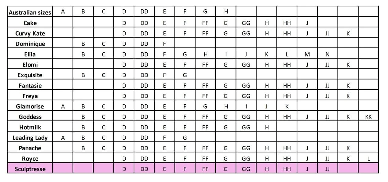 20-24 D, DD, E, F, FF, G, GG, H, HH.