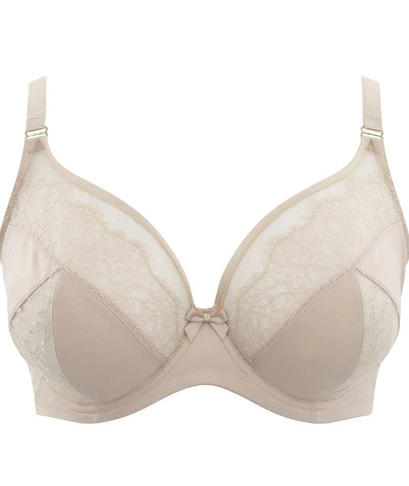2. Four section plunge bra with laminated simplex cups and lined lace cups.