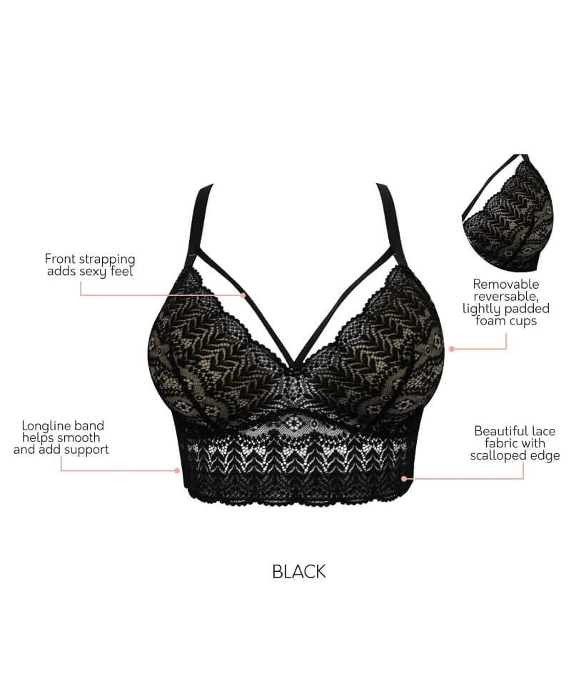 Get three ultra-stylish looks in one with the Mia Wireless Longline Lace Bralette by Parfait, which features moulded pads that are both removable (for a sheer lace look) or reversible thanks to a different colour on each side. Designed especially for fuller busts, this wireless bralette has an extra-wide band to enhance support.
