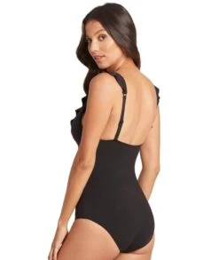 Sea Level Essentials Frill One Piece Swimsuit – Night Sky Navy