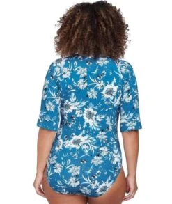 Artesands Fleur Du Champ Short Sleeve Sunsafe One Piece Swimsuit – Cerulean