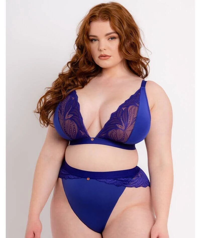 Bring the wow factor with the Scantilly Indulgence bralette in Ultraviolet. This bold colour adds a serious pop to any lingerie collection, with beautiful magnolia floral lace adorning the neckline to give stretch and flexibility in fit. Smooth, silky-soft microfibre feels luxurious against the skin, with a supportive mesh liner to give shape and gentle uplift.