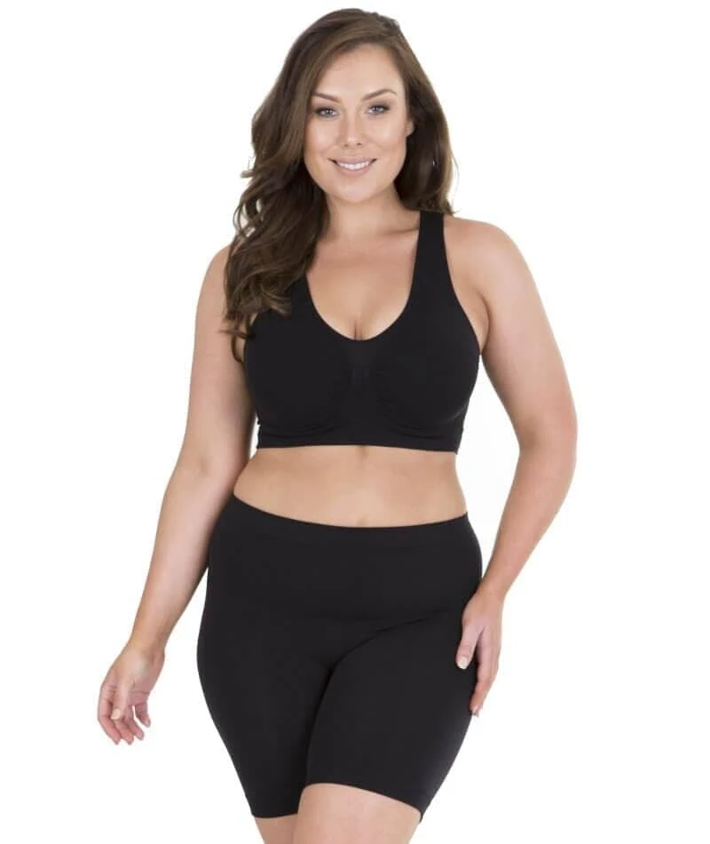 This bra is super lightweight and breathable. It’s smoothing, not shapewear, so it’s comfortable to wear all day. The seamless construction means there’s nothing to dig in or show through and the comfort is extreme as the high back takes the pressure off your neck and shoulders and the secure, wide strap supports.