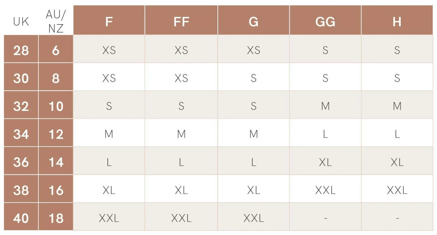 - 4XL: 20G, 22DD, 22E, 22F, 22FF