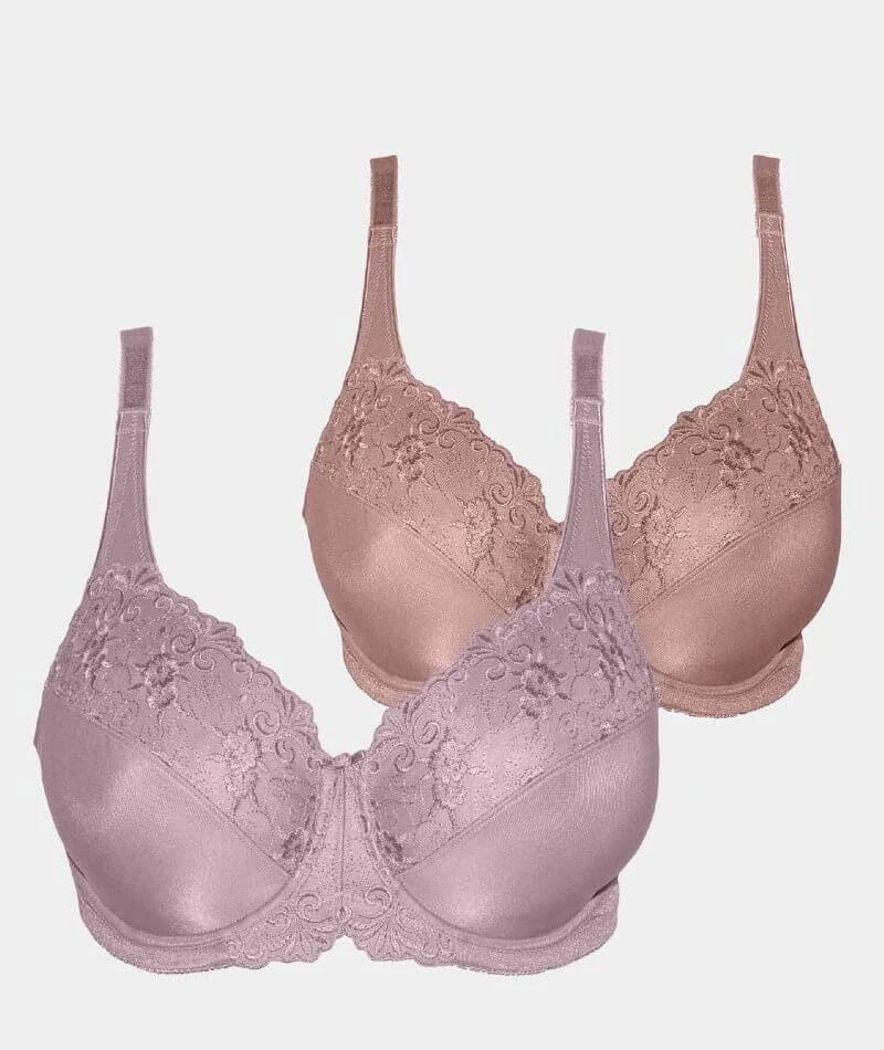 The famous Embroidered Minimiser Bra is now available in a great value 2 pack bra set featuring complementary colours, so you can always enjoy its stylish and functional design.