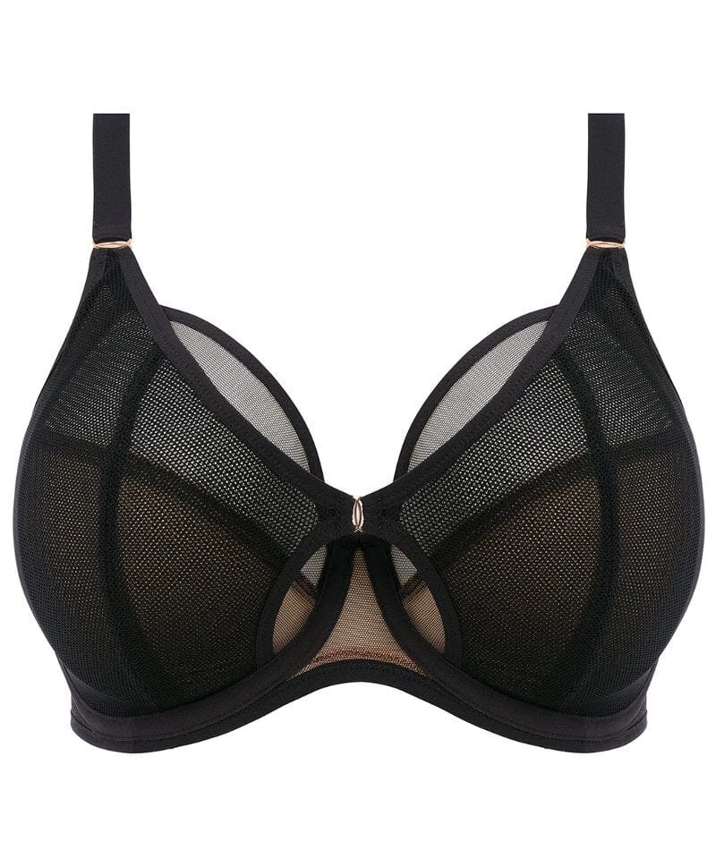 - Cup and wing overlay is cut from a fine stretch fishnet mesh