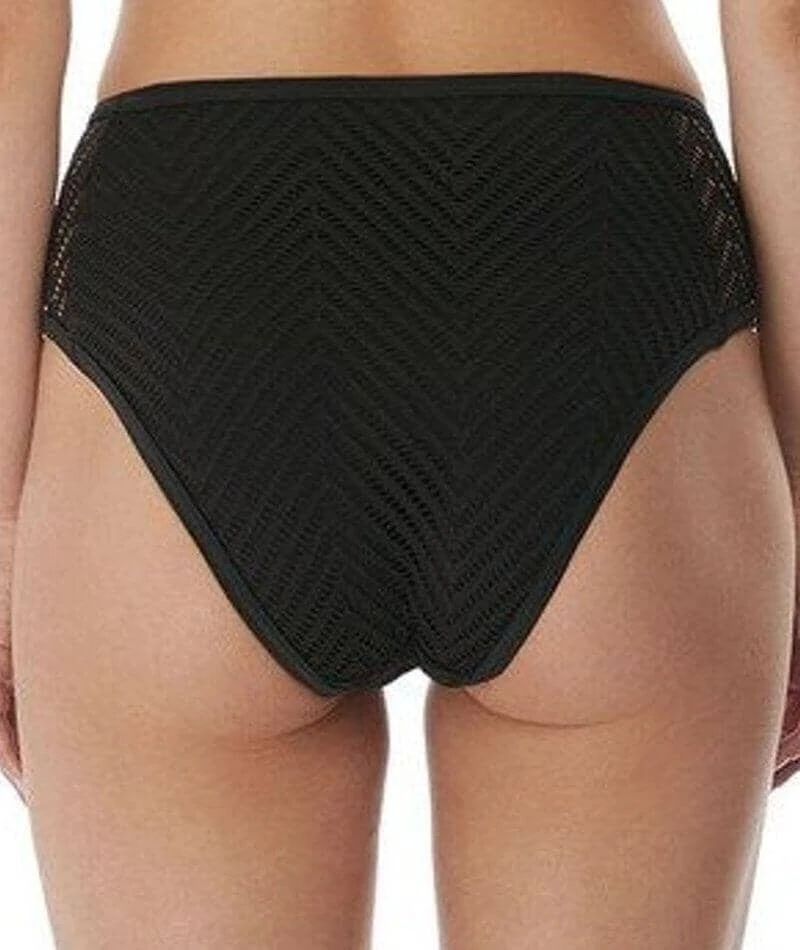 - Based on the standard high waist brief shape but with a higher waist and scoop leg line