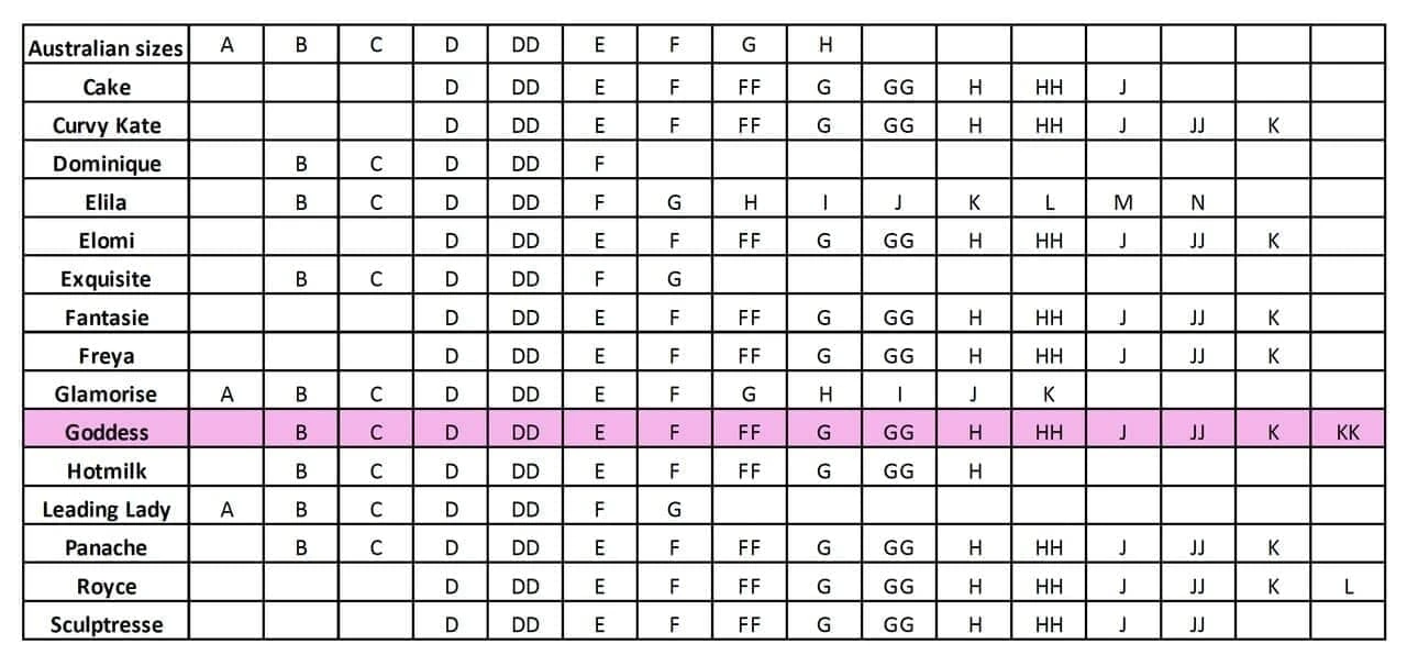 Sizes: 20-26 F, FF, G, GG, H, HH;Â